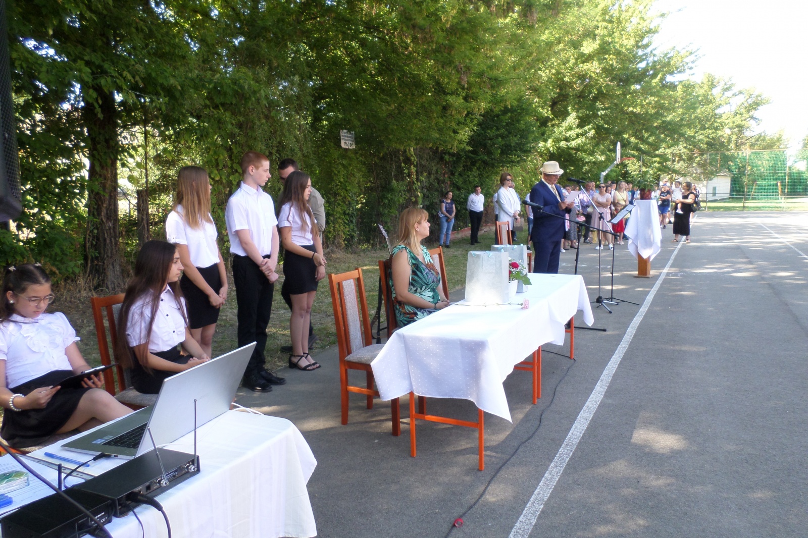 majd a zászlót Sára Máté végzős diáktól Krisztián Zoltán 7. osztályos tanuló vette át.