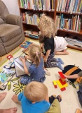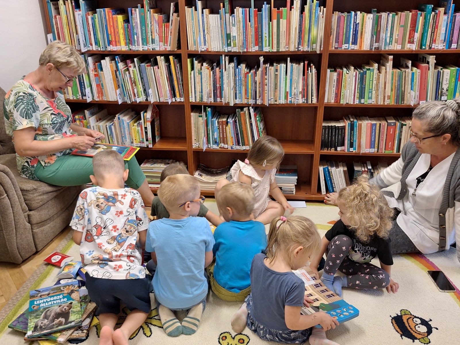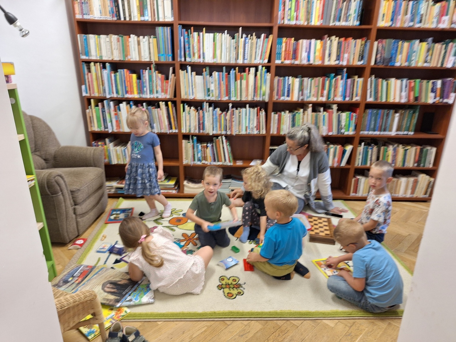 A meseszőnyegen kirakók, kártya, sakk, logikai játék, lego és mesekönyvek várták a gyermekeket.