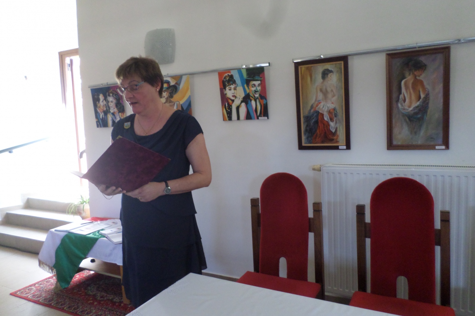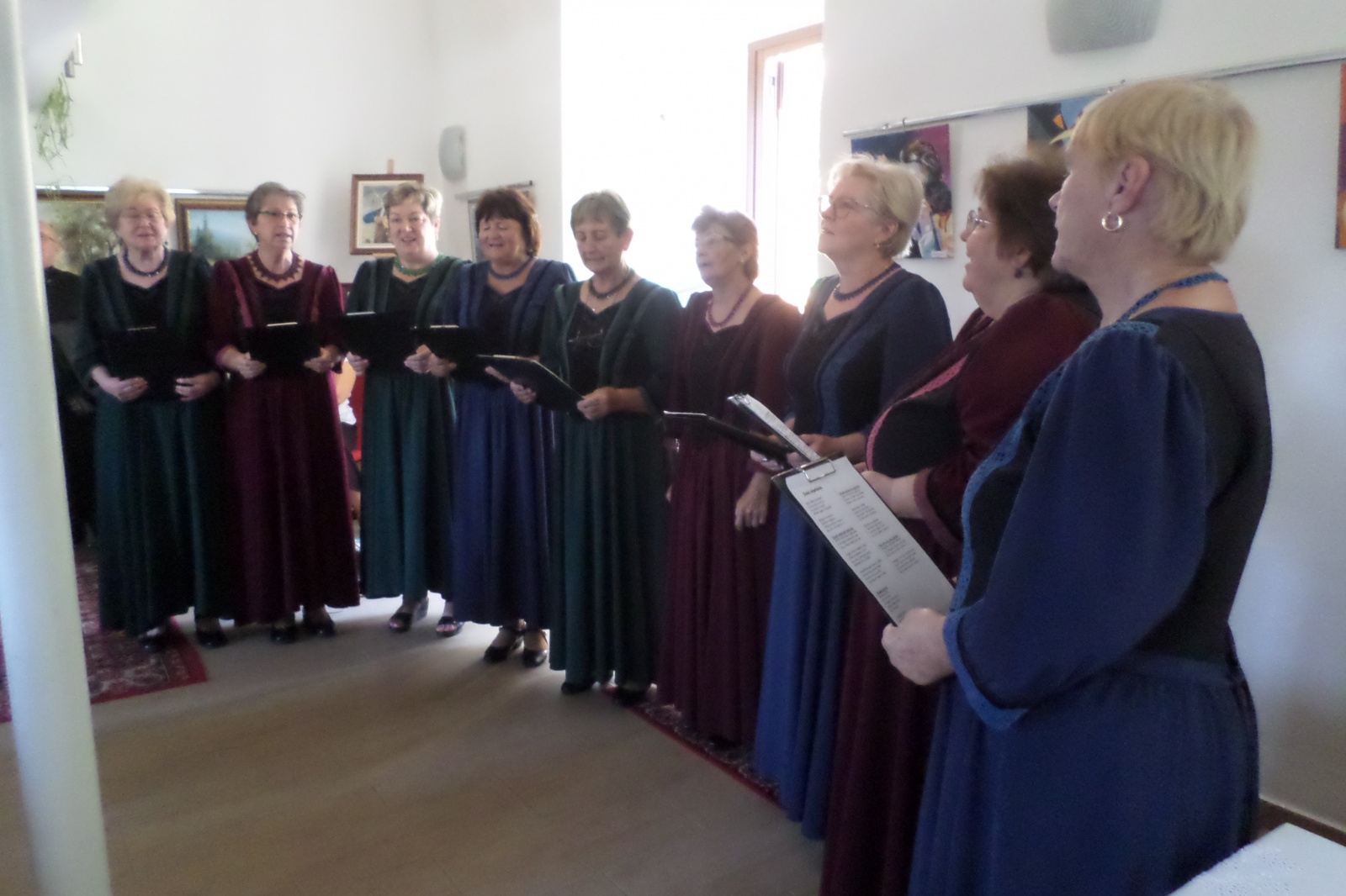 Gárdi Szilvia ünnepi megemlékezése után Laki Erzsébet festménykiállítását Németh Kata, a Bárka Művészeti Szalon titkára nyitotta meg, a zönge Népdalkör pedig vidám zalai dalcsokorral köszöntötte a kiállító művészt.