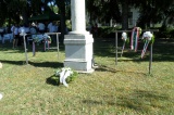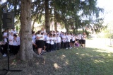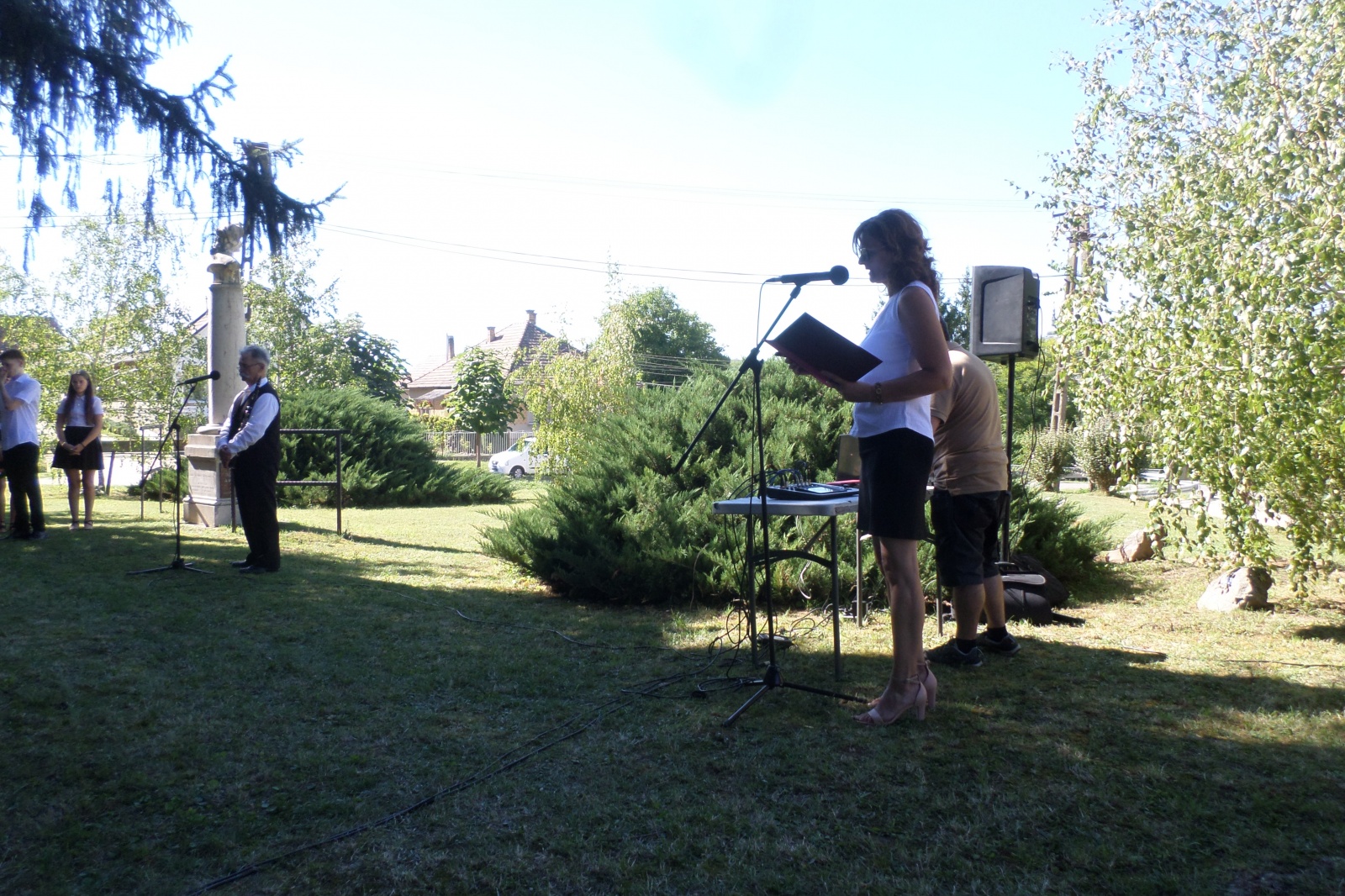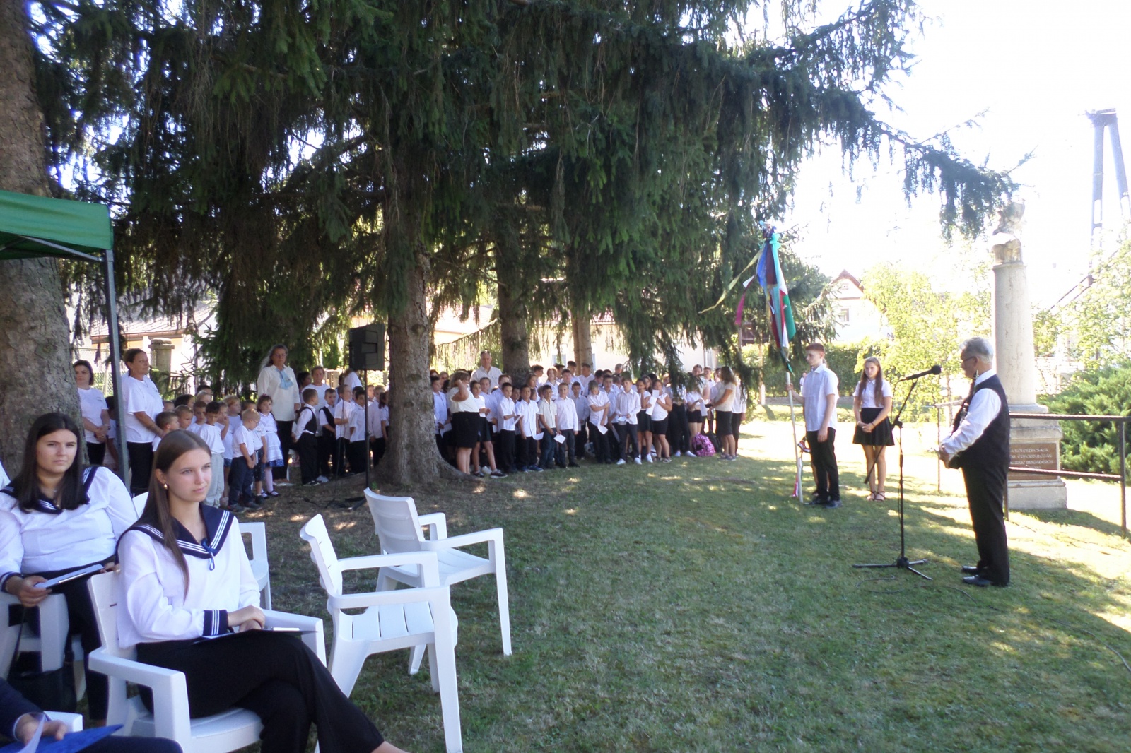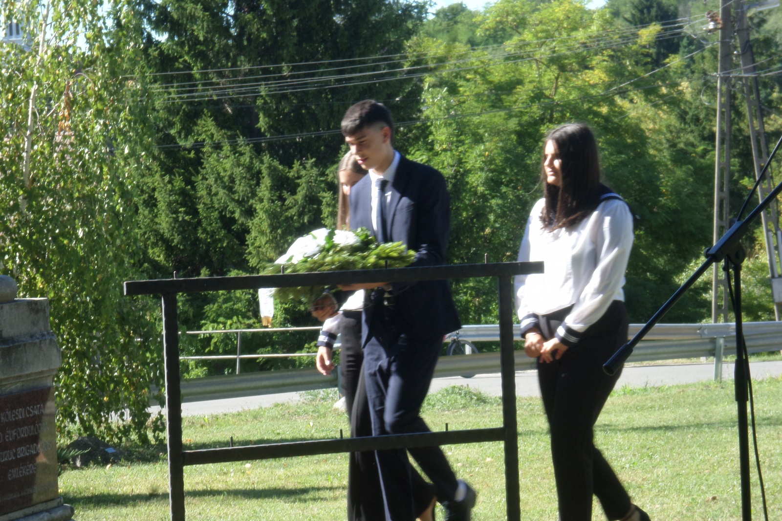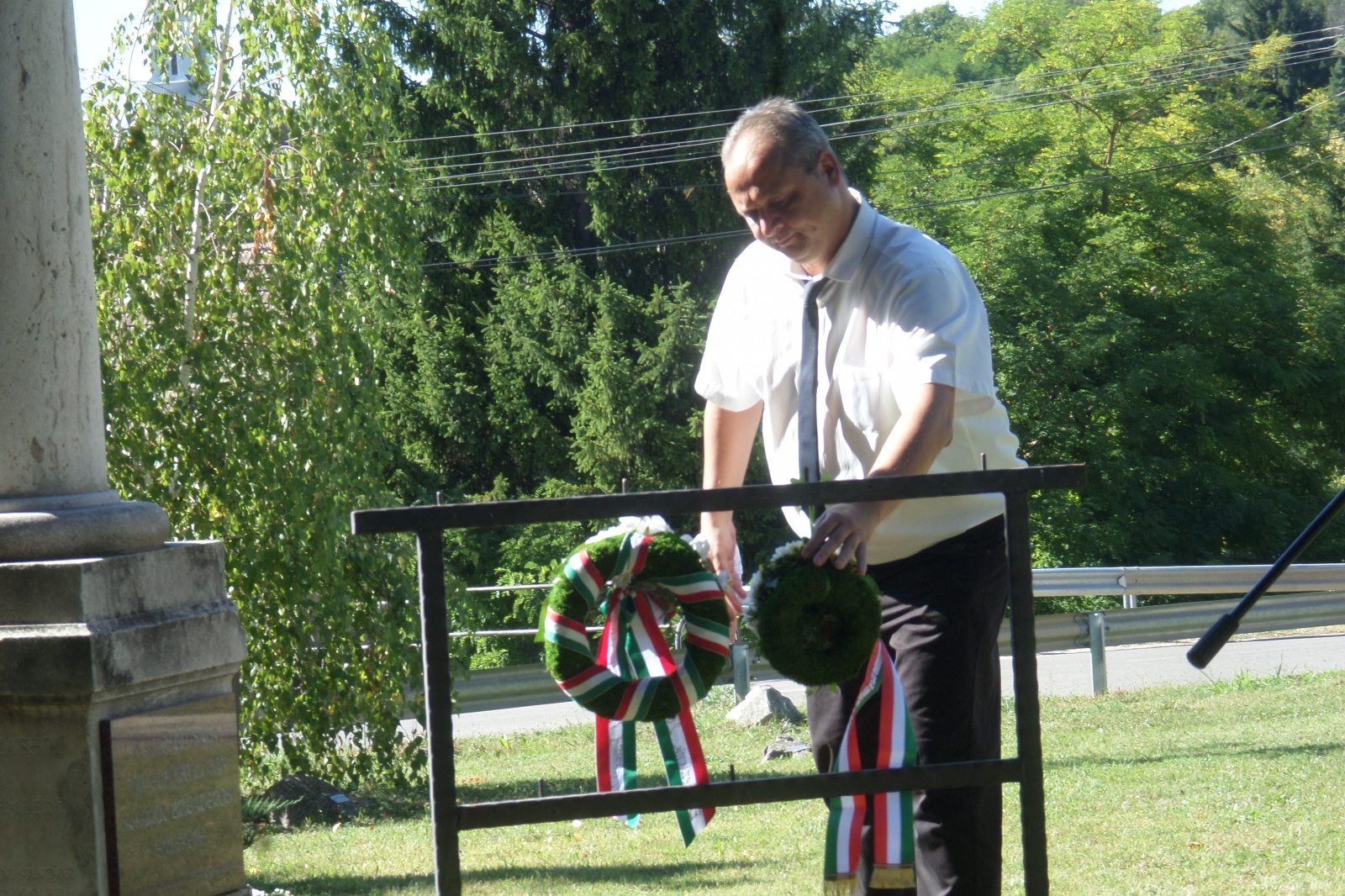 Közösen énekeltük Béri Balogh nótáját, majd a tisztelet koszorúi kerültek a szobor talpazatára.