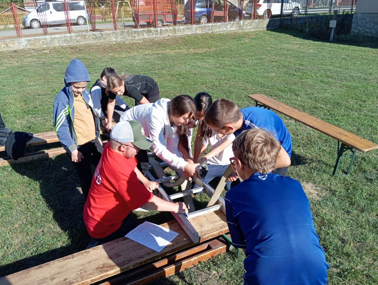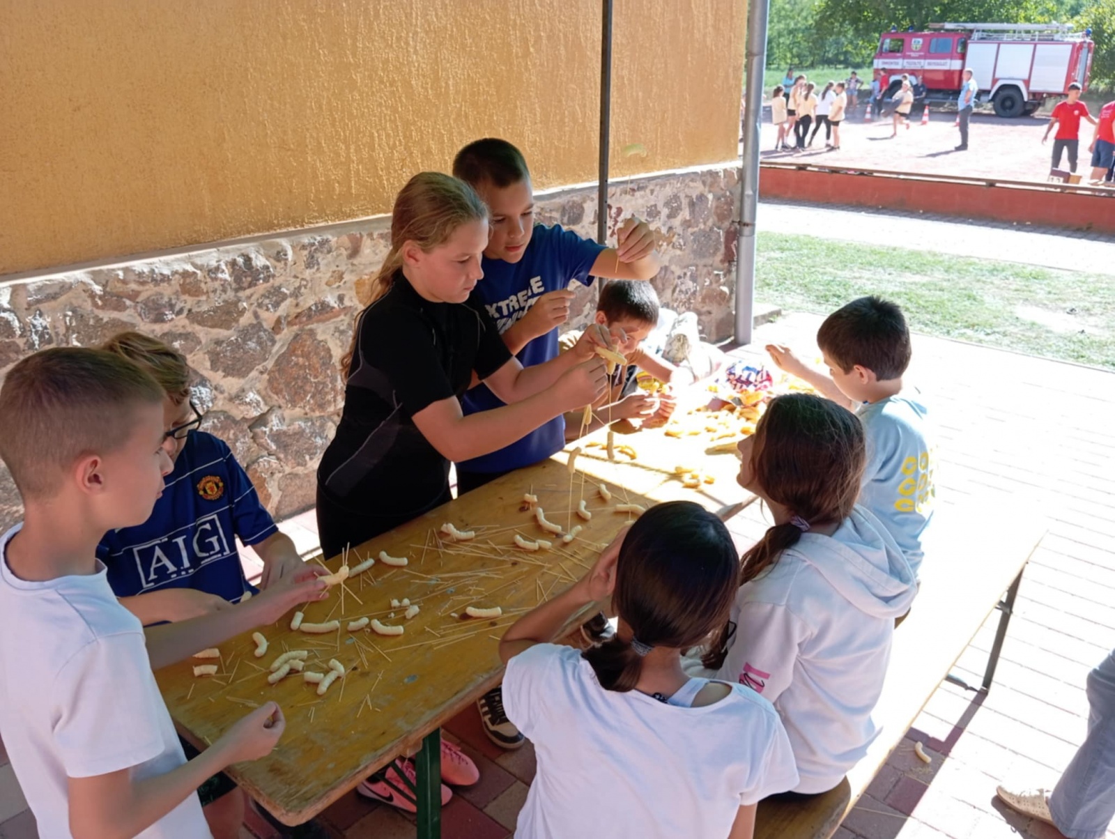 Az 5. osztályból 8 tanuló tréfás ügyességi állomások során ismerkedhetett a tűzoltók feladataival.