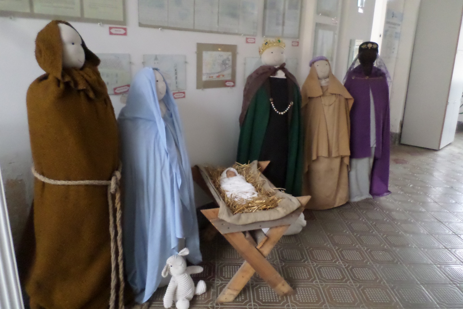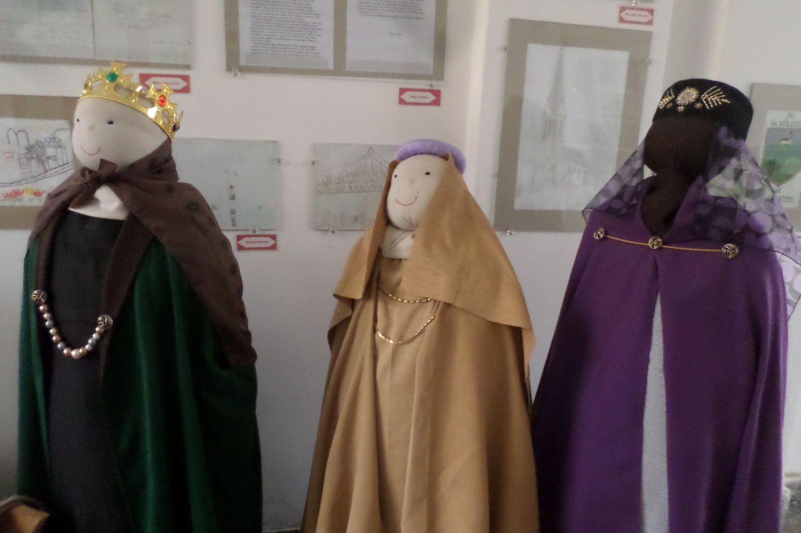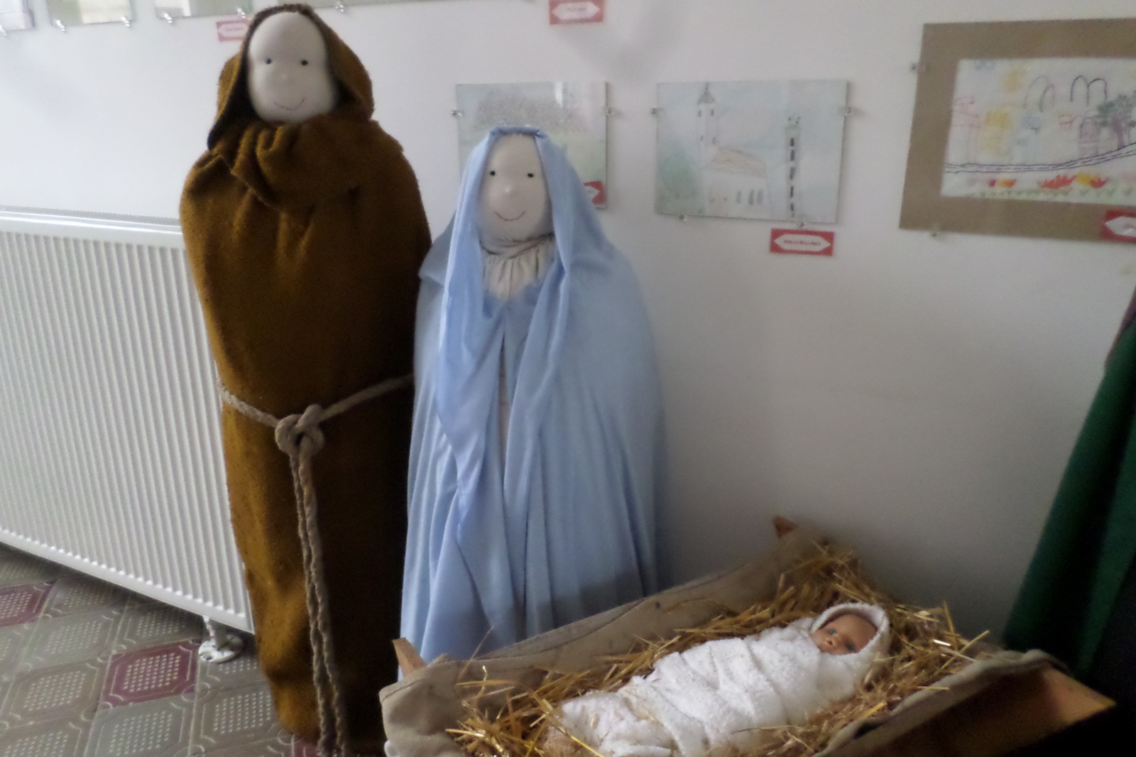 Aranyi Attiláné "szent családja a háromkirályokkal" az önkormányzat bejárati folyosóján adják az ünnepi hangulatot.