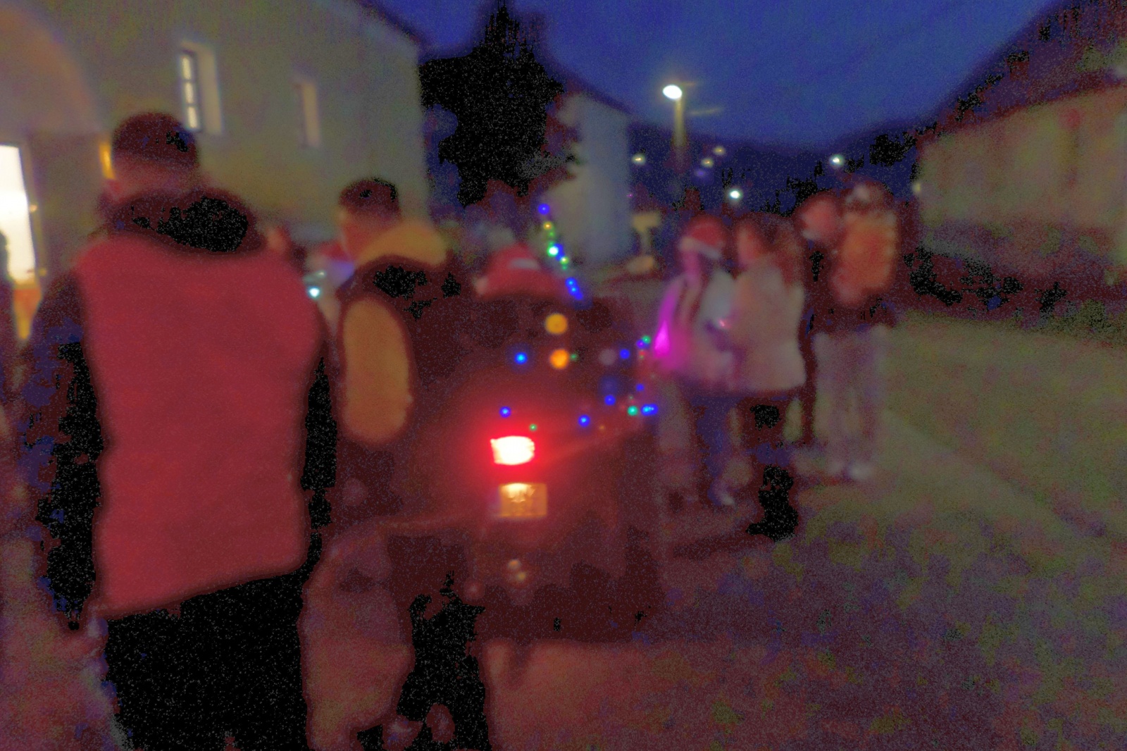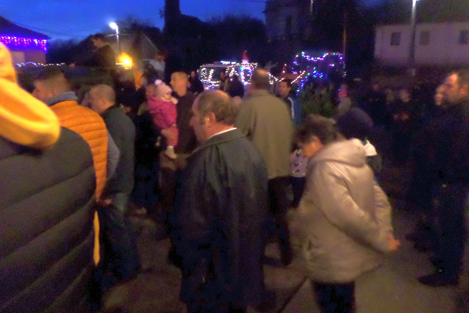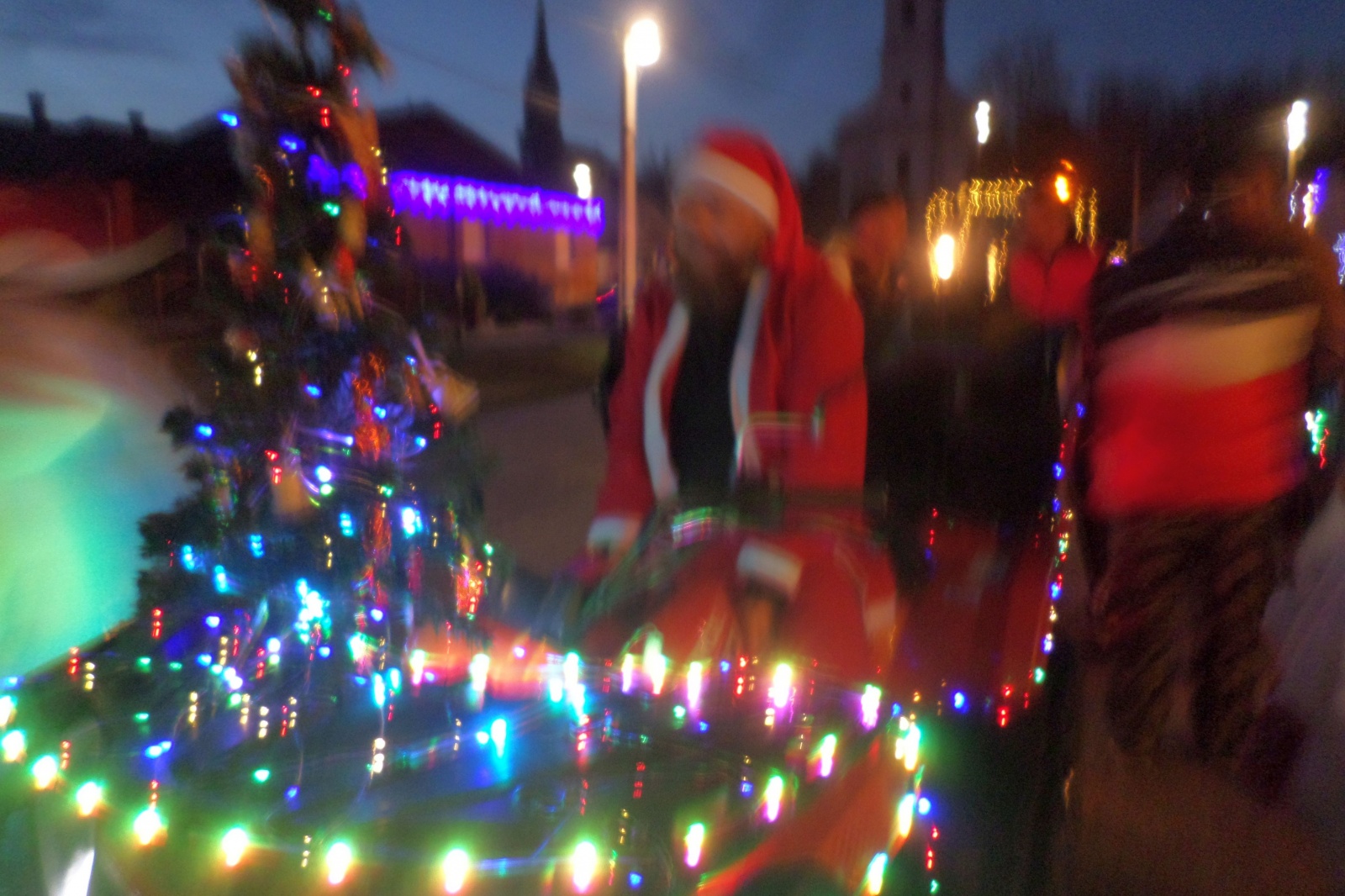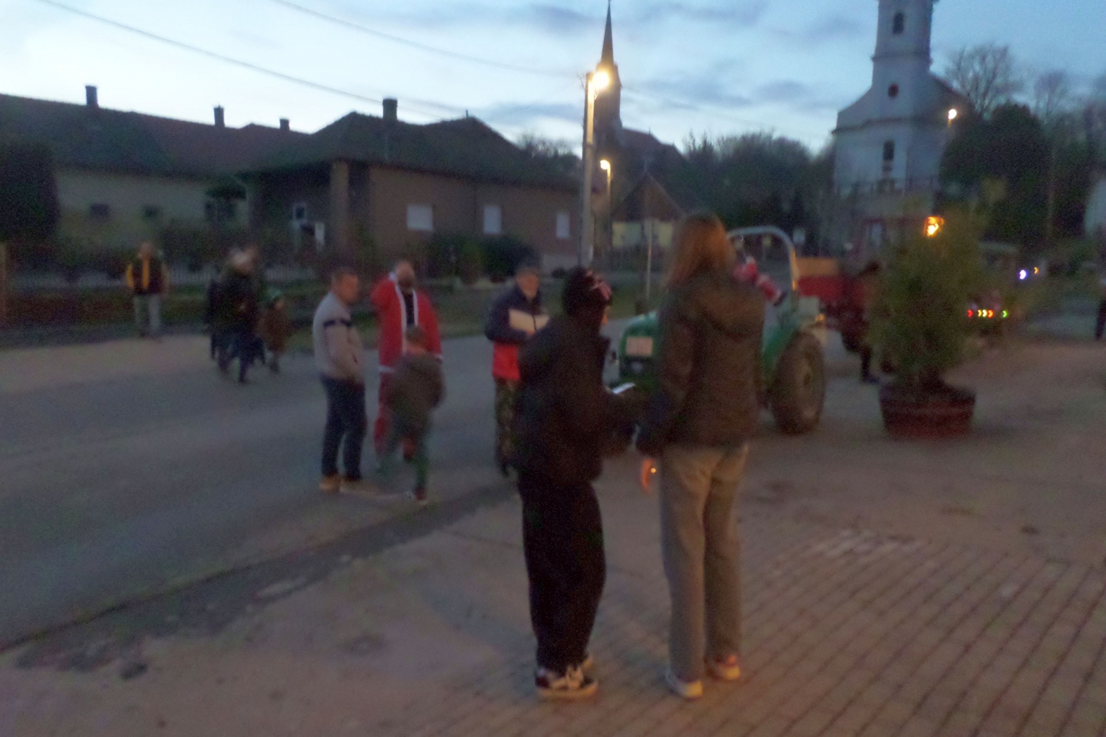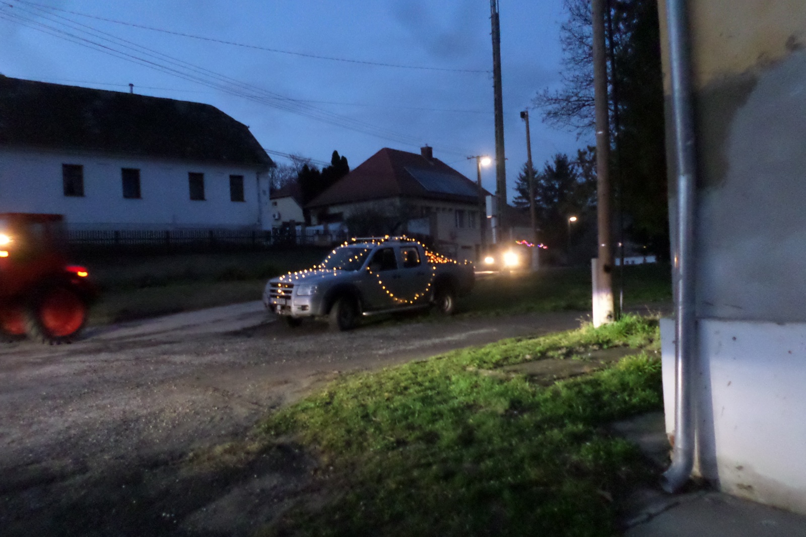 Aztán 5 óra környékén a Mikulást (Schwarcz Zsolt) szállító traktor után indult a többi tizenhat jármű is.