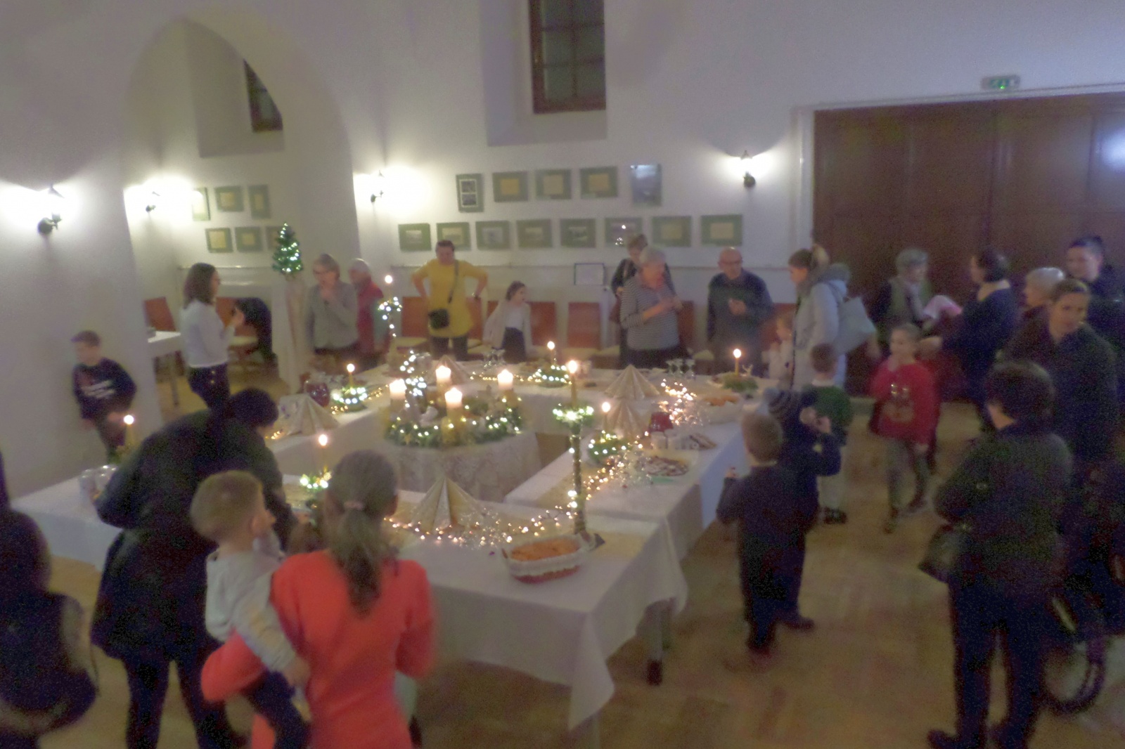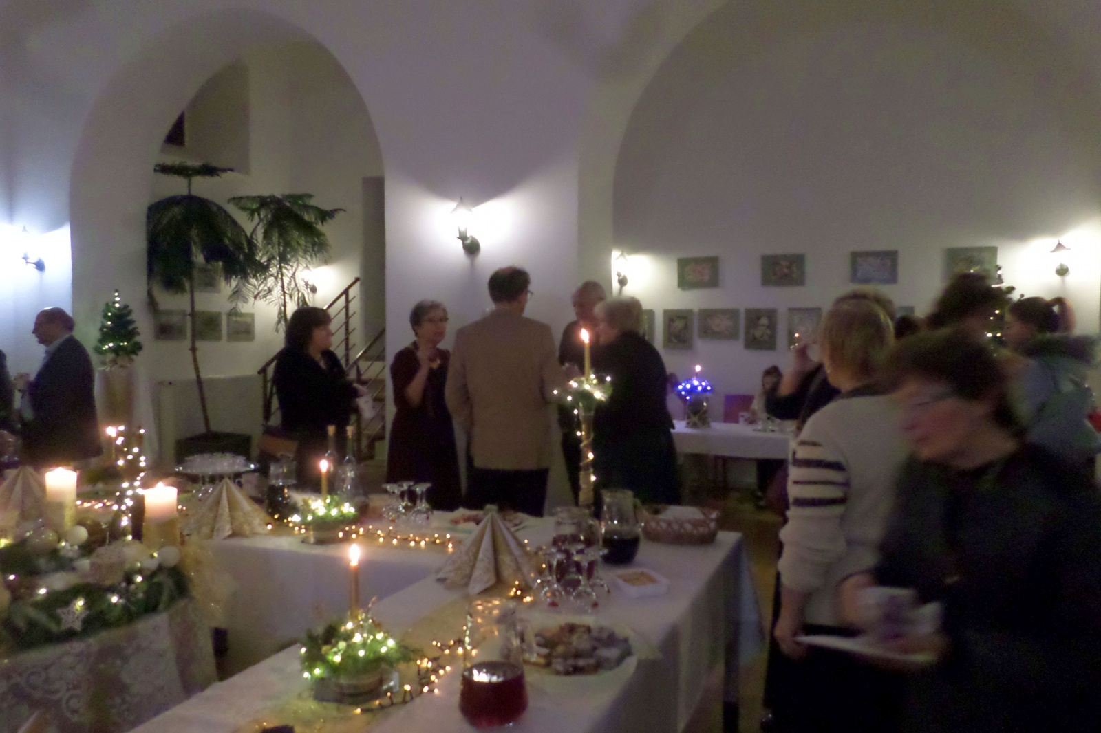 Az invitálásnak eleget téve a "tűzoltó szertárban" az ünnepi díszbe öltöztetett terem égő gyertyái, házi sütemények, forró tea és forralt bor fogadott bennünket.