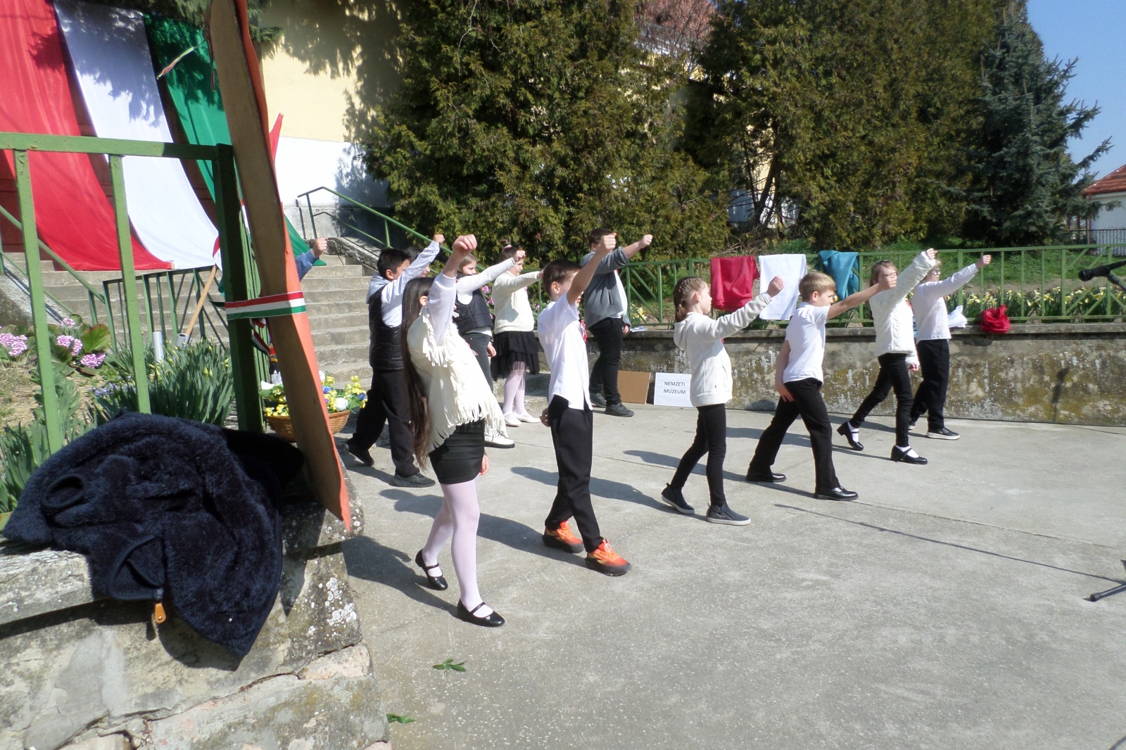Az iskola ünnepi műsorában megelevenedtek a forradalom és szabadságharc eseményei, a díszlet, a kiegészítő motívumok, a gyermekek mozgása és szövegmondása, a zenei betétek telje összhangban tették teljessé az előadást.