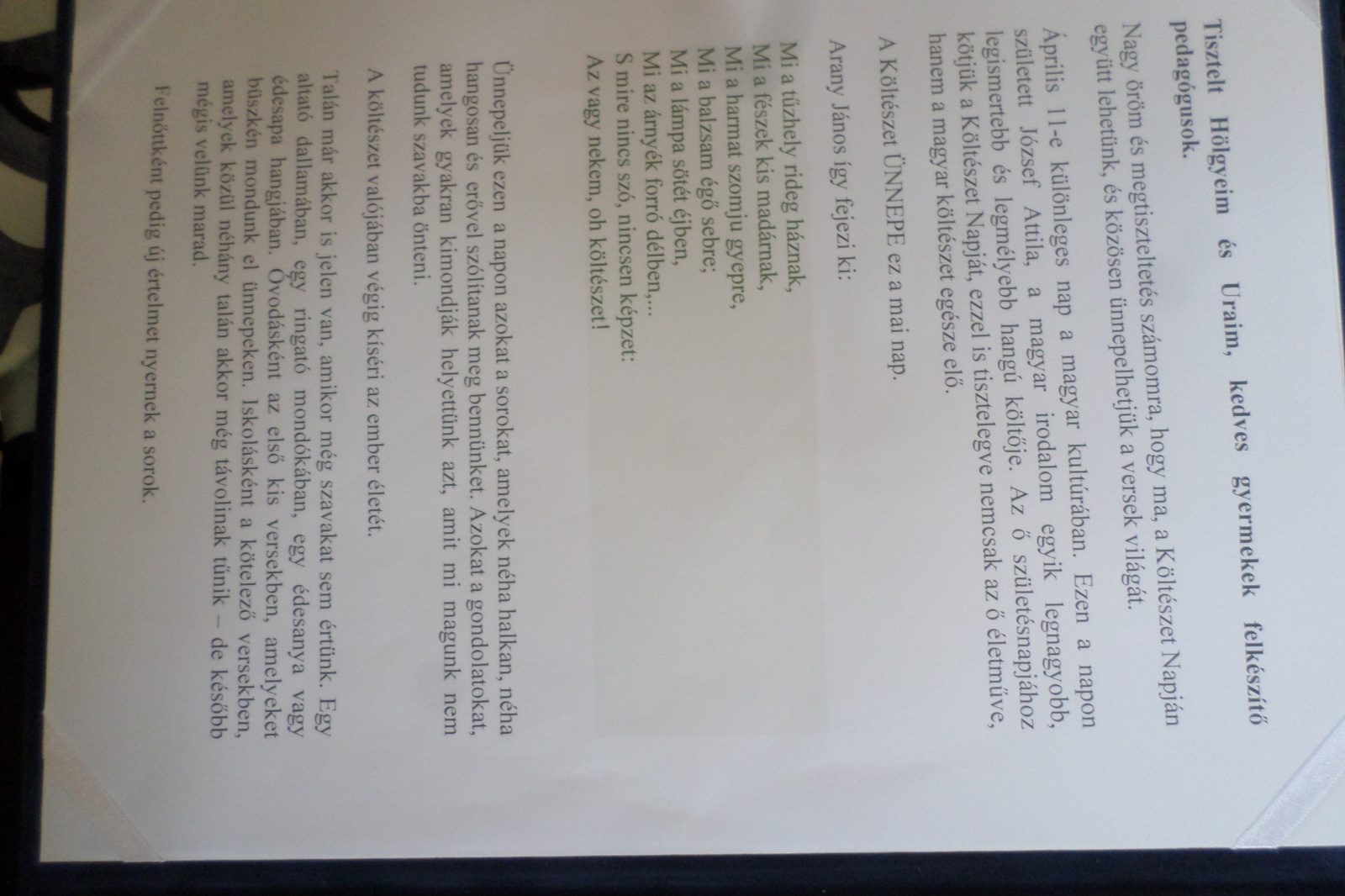Szakálosné Marosi Ildikó óvodavezetőt, majd Boda Ildikó gondolatait hallgattuk meg a költészet napjáról.
