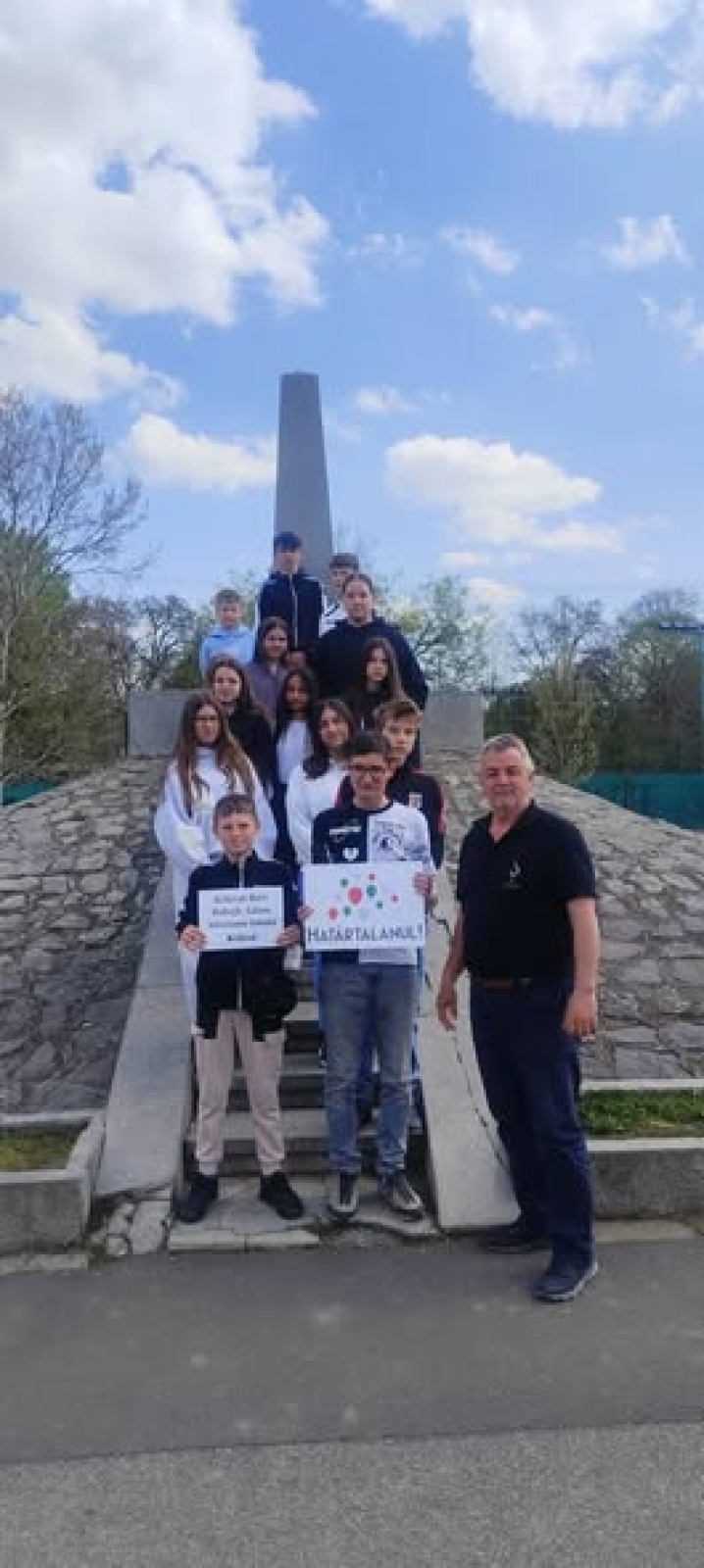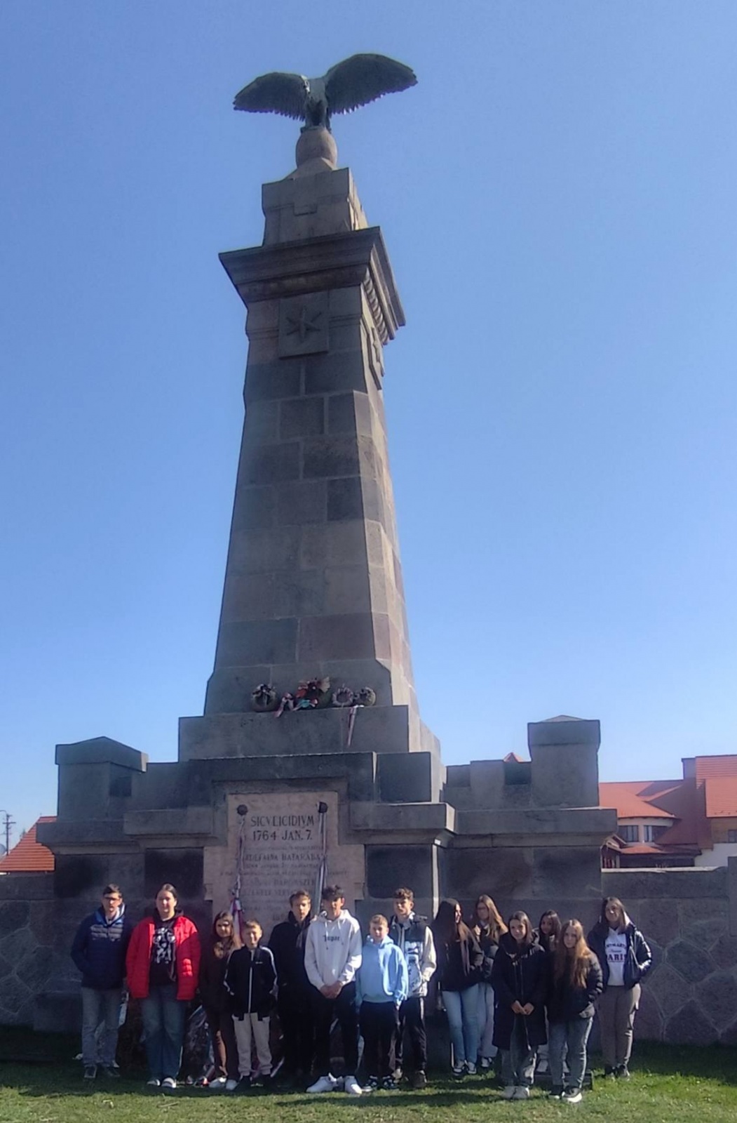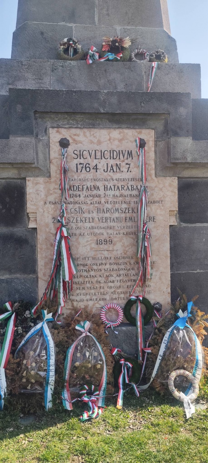 Délelőtt a csapat megkoszorúzta a madéfalvi mészárlás emlékművét, majd Gyergyóalfaluban Balázs József művésztanár mesélt a gyerekeknek Erdélyről és a székelyekről. Olyan szépen mesélt, hogy a gyerekek néma csendben hallgatták.